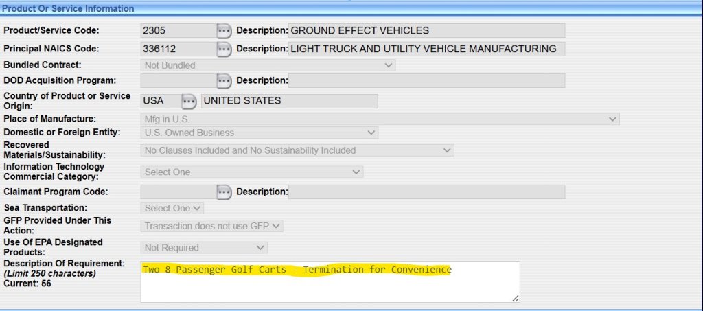 Over the last 2 days, agencies terminated and descoped 14 NAUGHTY contracts with a ceiling value of $190M and savings of $98M, including an $27k VA utilities contract for “two 8-passenger golf carts”.